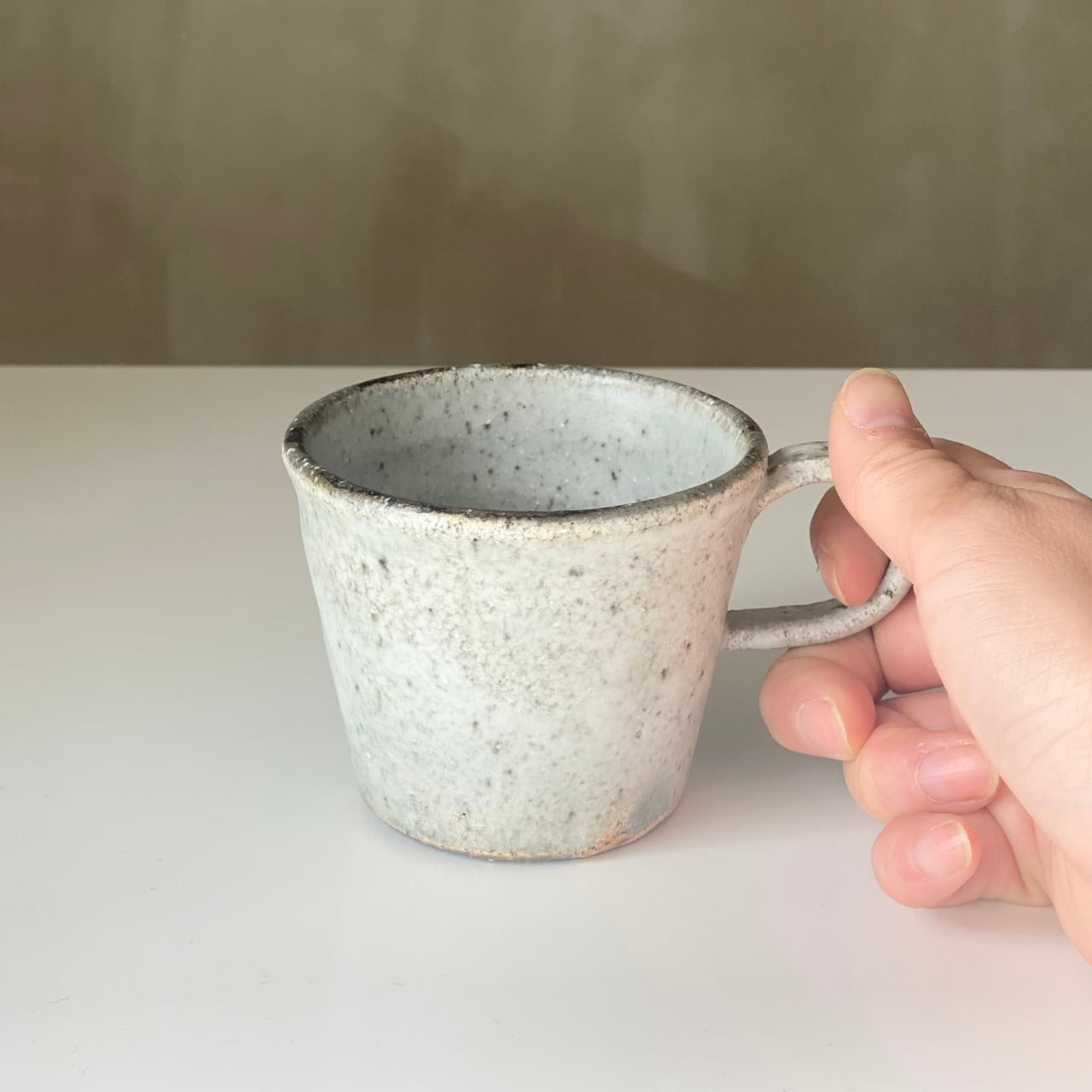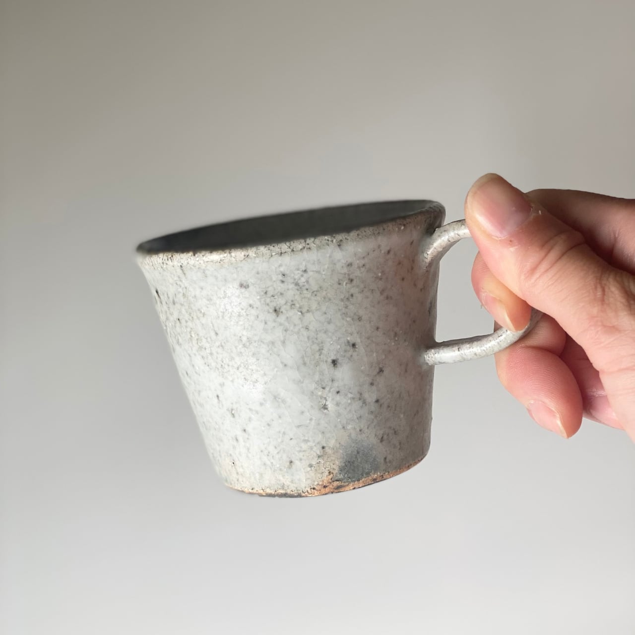 ちょっと小ぶりな小野さんのマグカップです。私は、毎朝このマグカップでコーヒーを飲んでいます。このサイズ感が朝のちょっとした目覚めの一杯にちょうど良いのです。